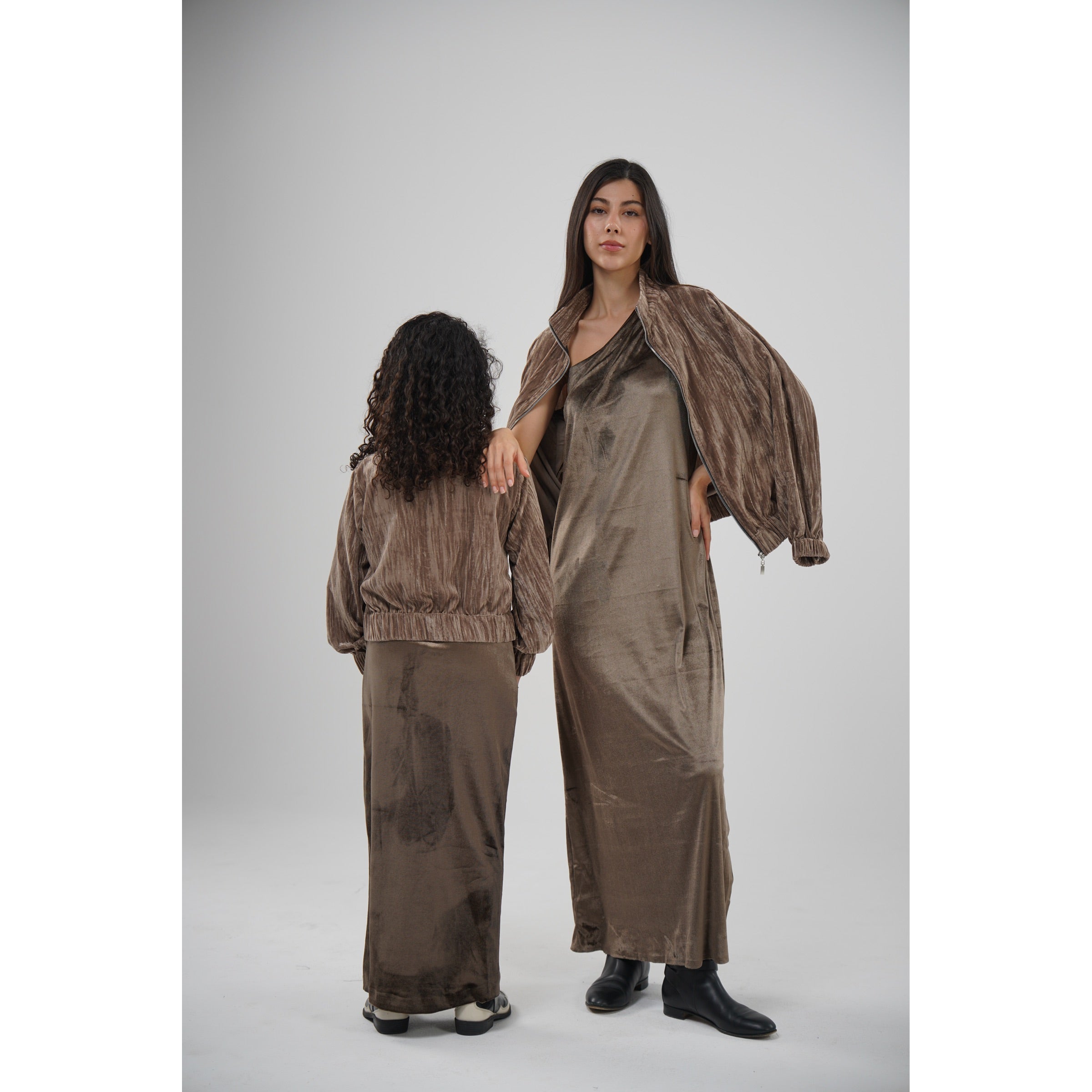 دراعه مخمل باللون الابتوب مع جاكيت مخمل فيه ذهبي