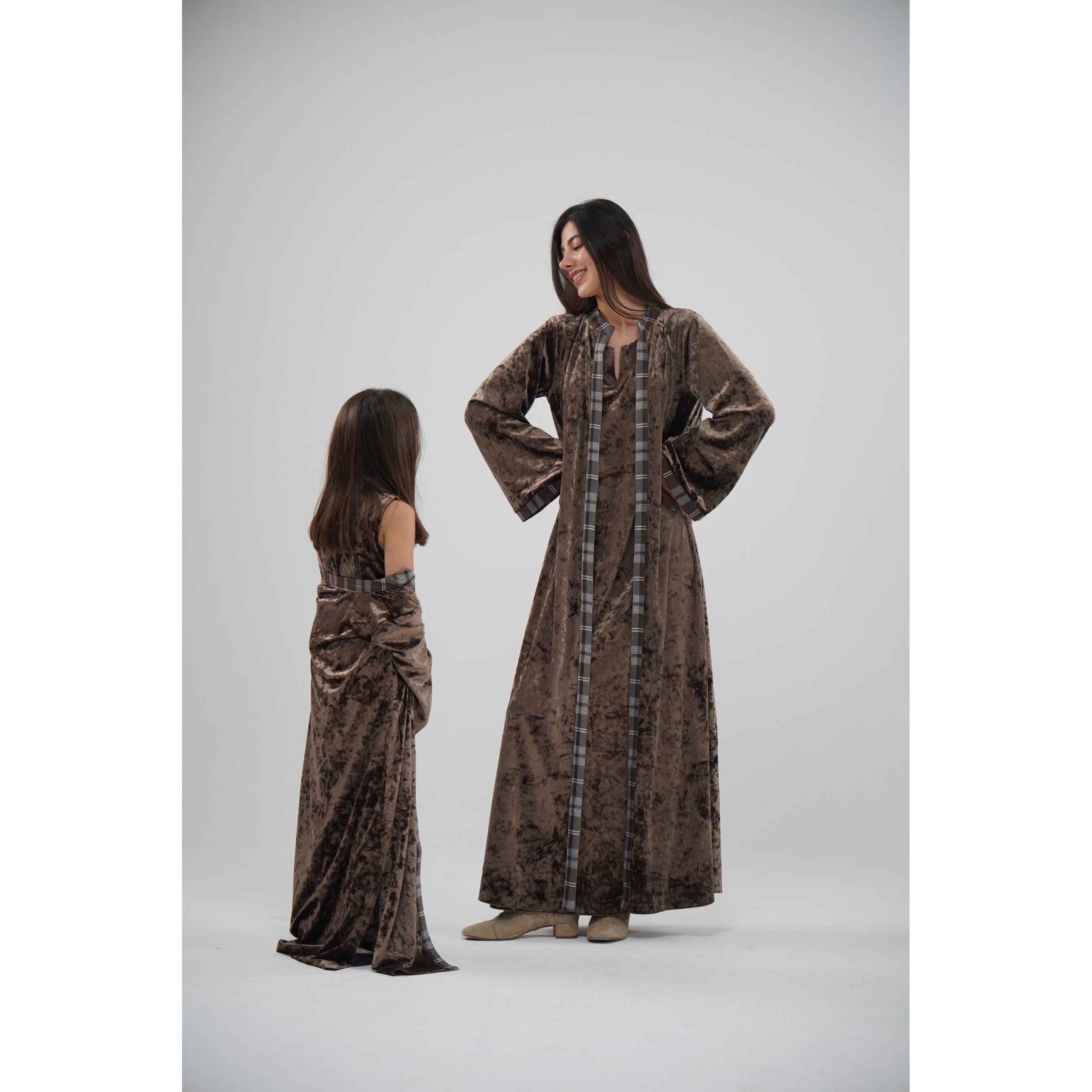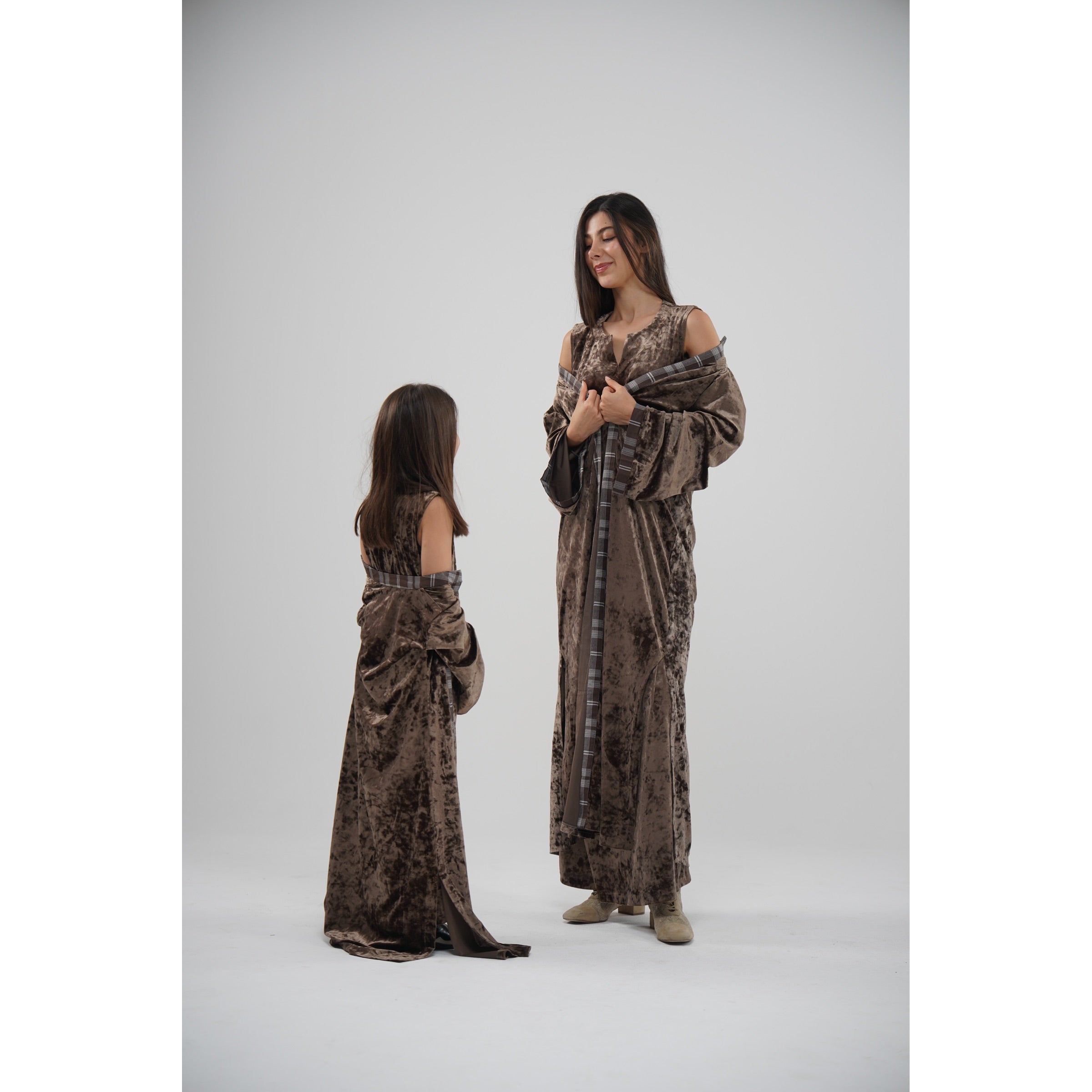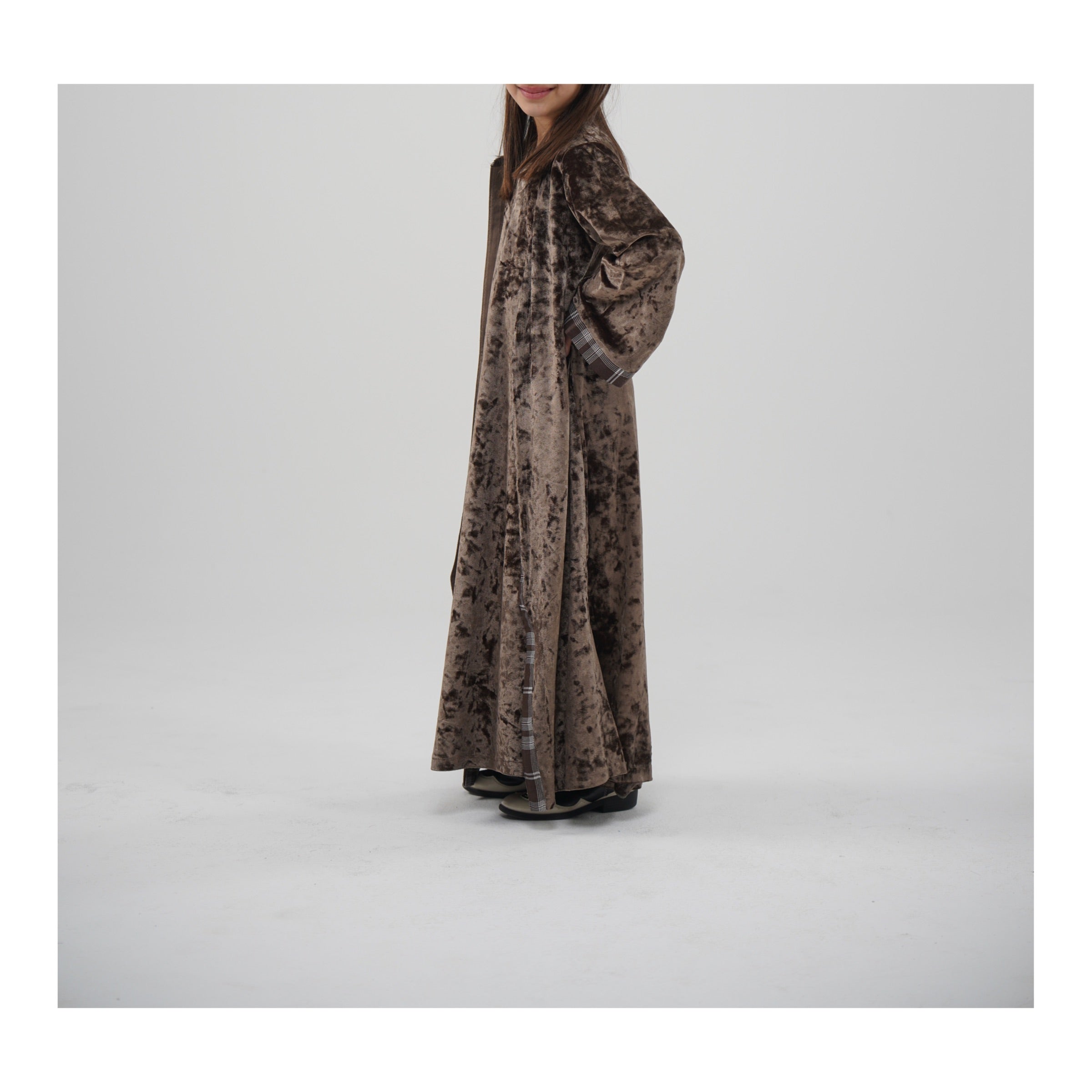 دراعه مخمل بني مع اطراف مبكره