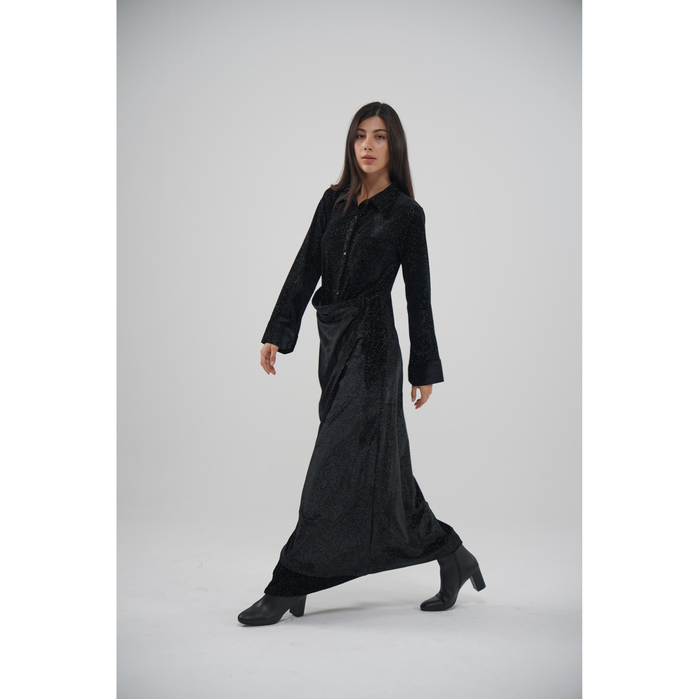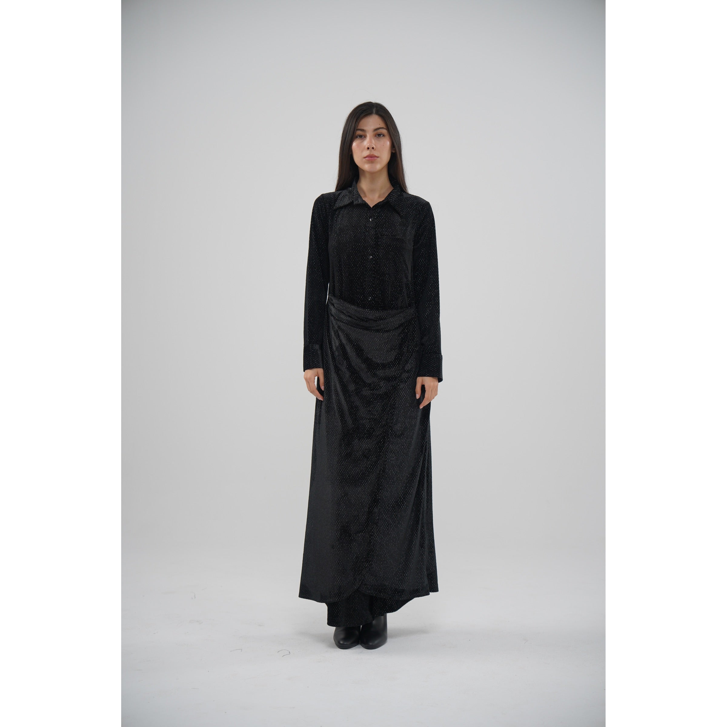 دراعه مخمل باللون الاسود الطول ٥٦ انش